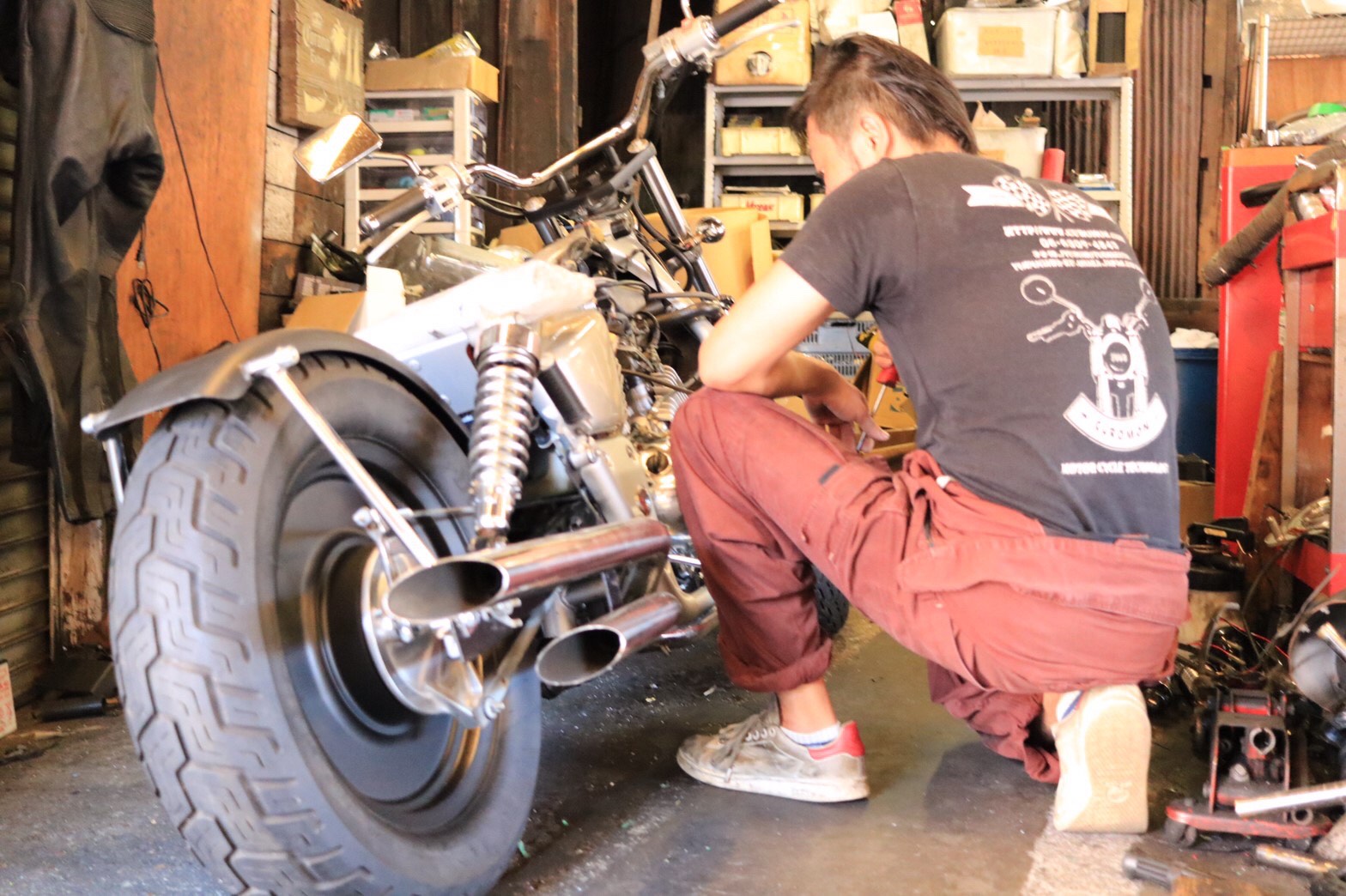 阪急十三駅から徒歩7分程度。自賠責保険取り扱い、任意保険取り扱い、交通事故修理・見積もりなど対応します。おもにカスタムをしていますが、通勤から趣味までをカバーできるようなバイクやを目指してます。ファッションで乗るもよしスピード出したいのもよし。流行りに乗ったかっこよさではなく、バイクならではのかっこよさを探求していければなと思います。お金かければ乗れるバイクより、在るものを上手く活用してお気に入りのバイクを、提供していきたいです。冷蔵庫にあるもので美味しい料理を作るような仕事を目指してます。バイクで繋がる縁が広がれば幸いです。